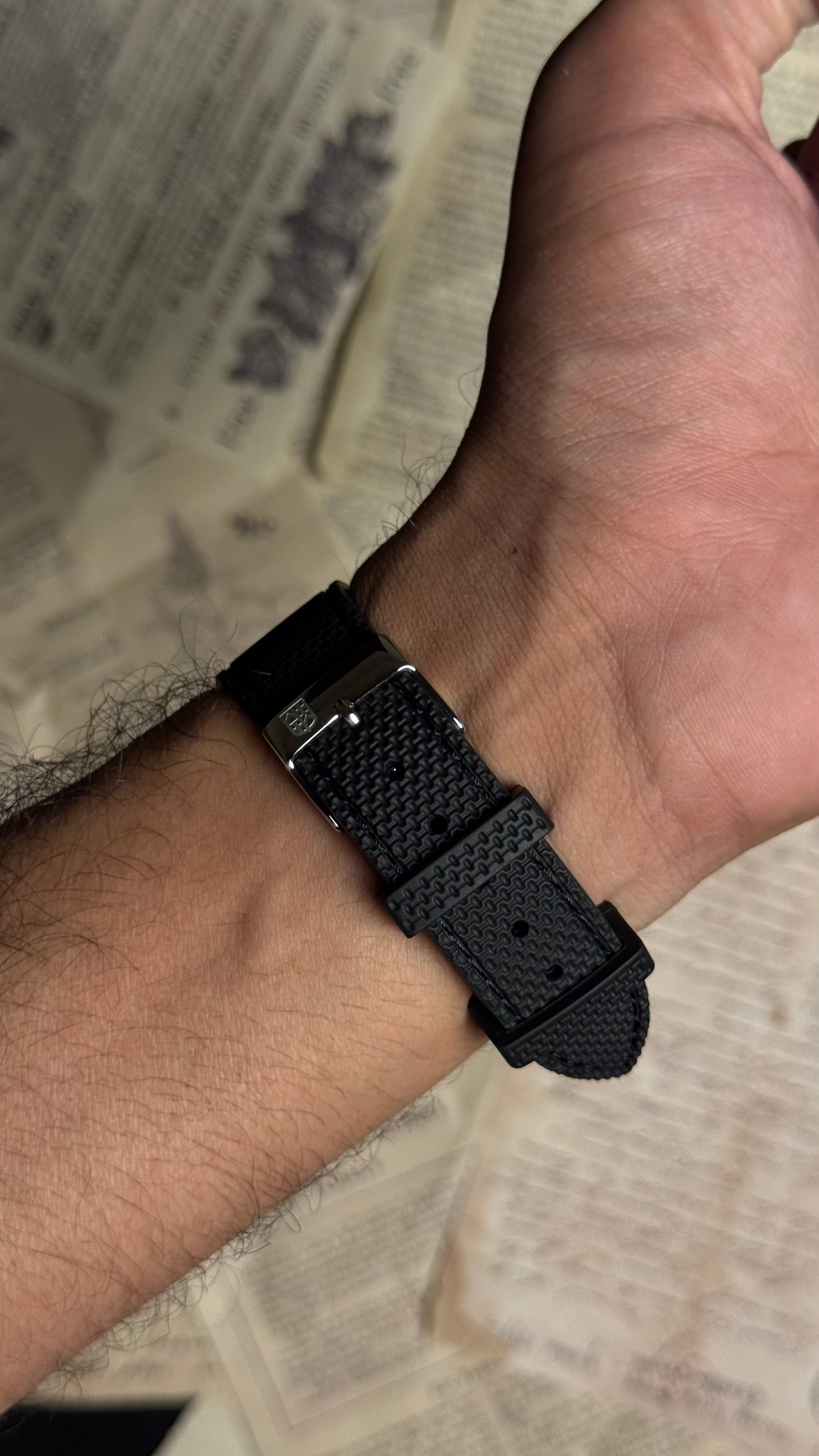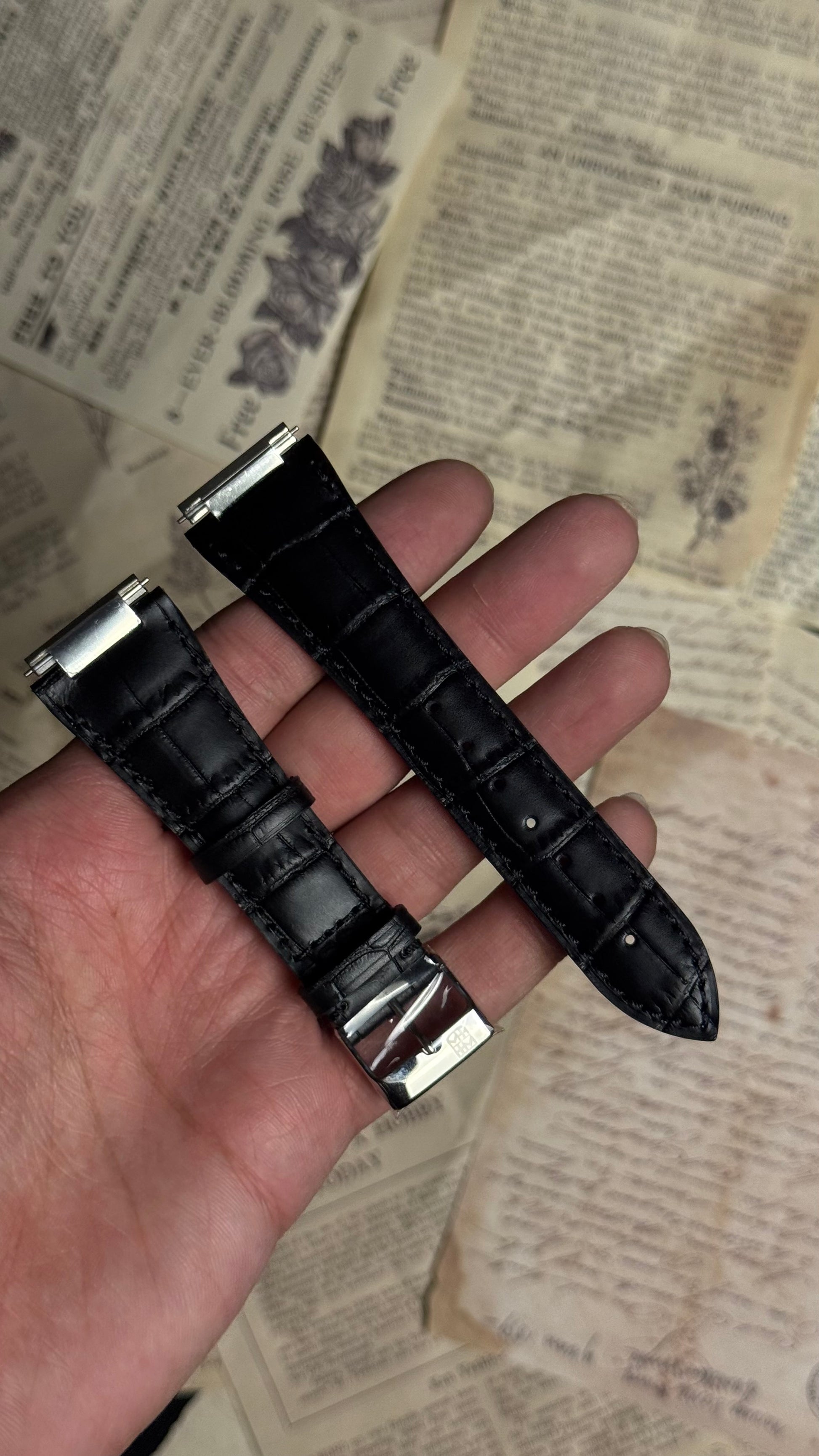 Strap/Bracelet Material: Black calf leather + Rubber